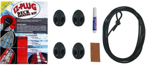 Made for SUP, paddleboards, surfboards, canoes, kayaks, and other fiberglass marine crafts. The EZ-Plug Deck Rigging Kit helps you put a bungee deck rigging system where you want it. The kit includes EZ Plugs, super glue, bungee cord, and instructions. Loop knot the end for easy adjusting of bungee cord tension. Attaches to flat fiberglass surfaces. NO TOOLS OR DRILLING.